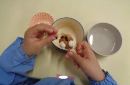 はじめに、作り方の説明をしっかりと聞き、子どもたちはワクワクした表情で準備をしていました。「どうやるのかな?」「早く作りたい!」と期待を膨らませながら、笑顔いっぱいの時間となりました。