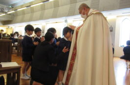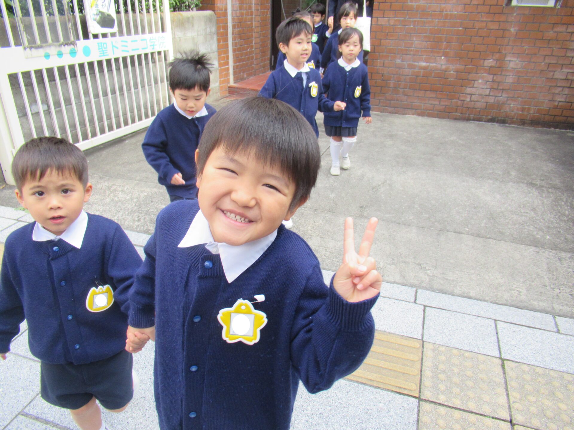 聖ドミニコ学院聖堂までバスで向かいました🚌みんなで手を合わせ、入堂です!