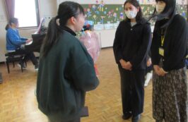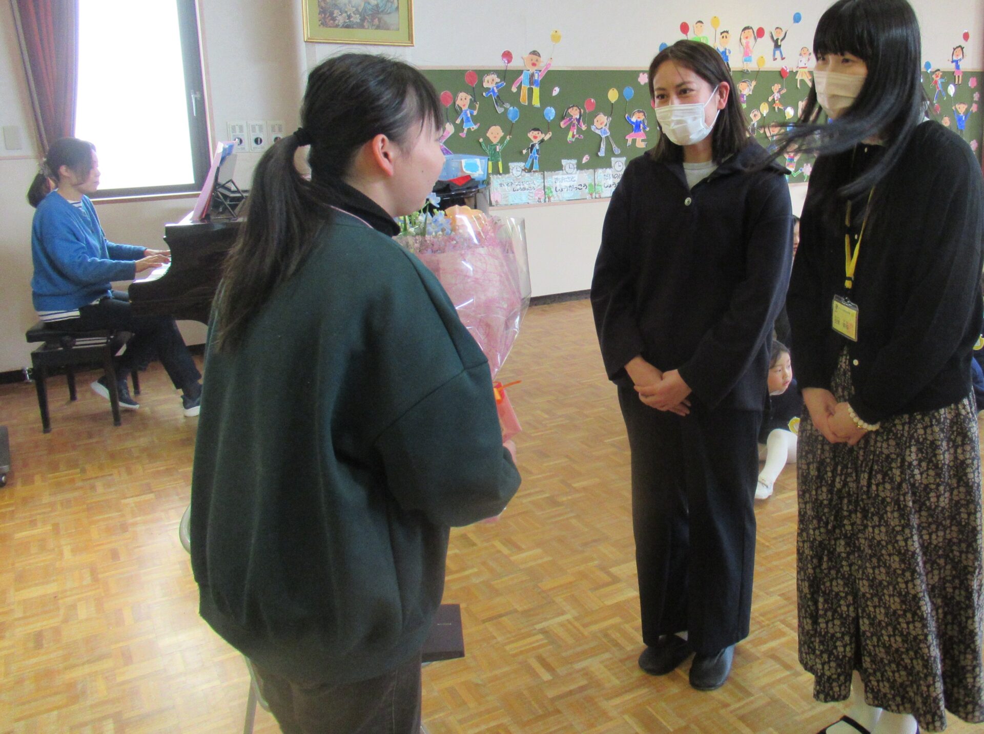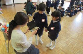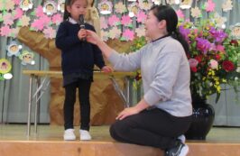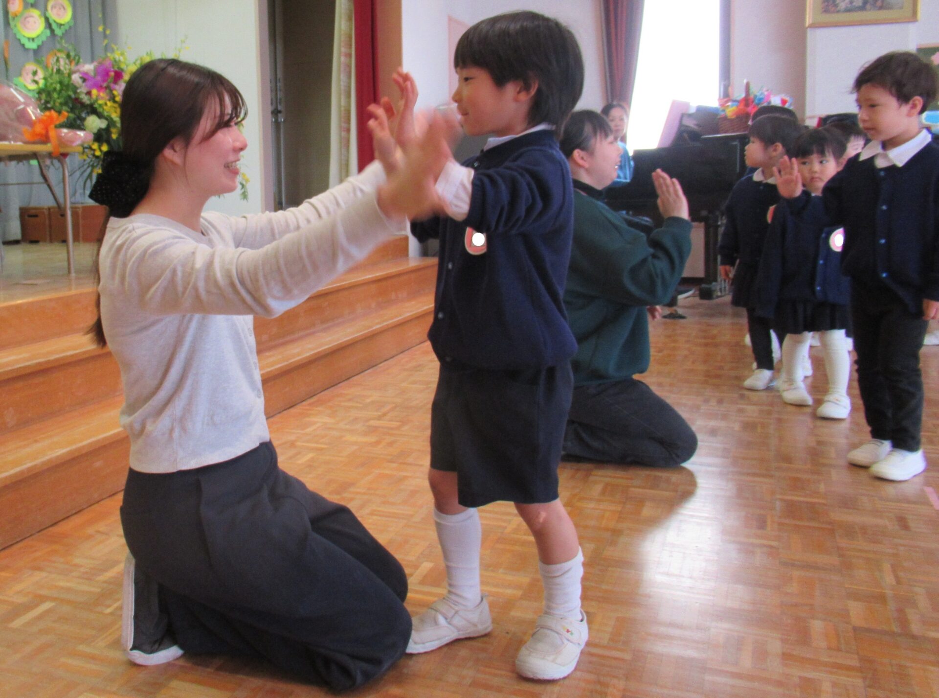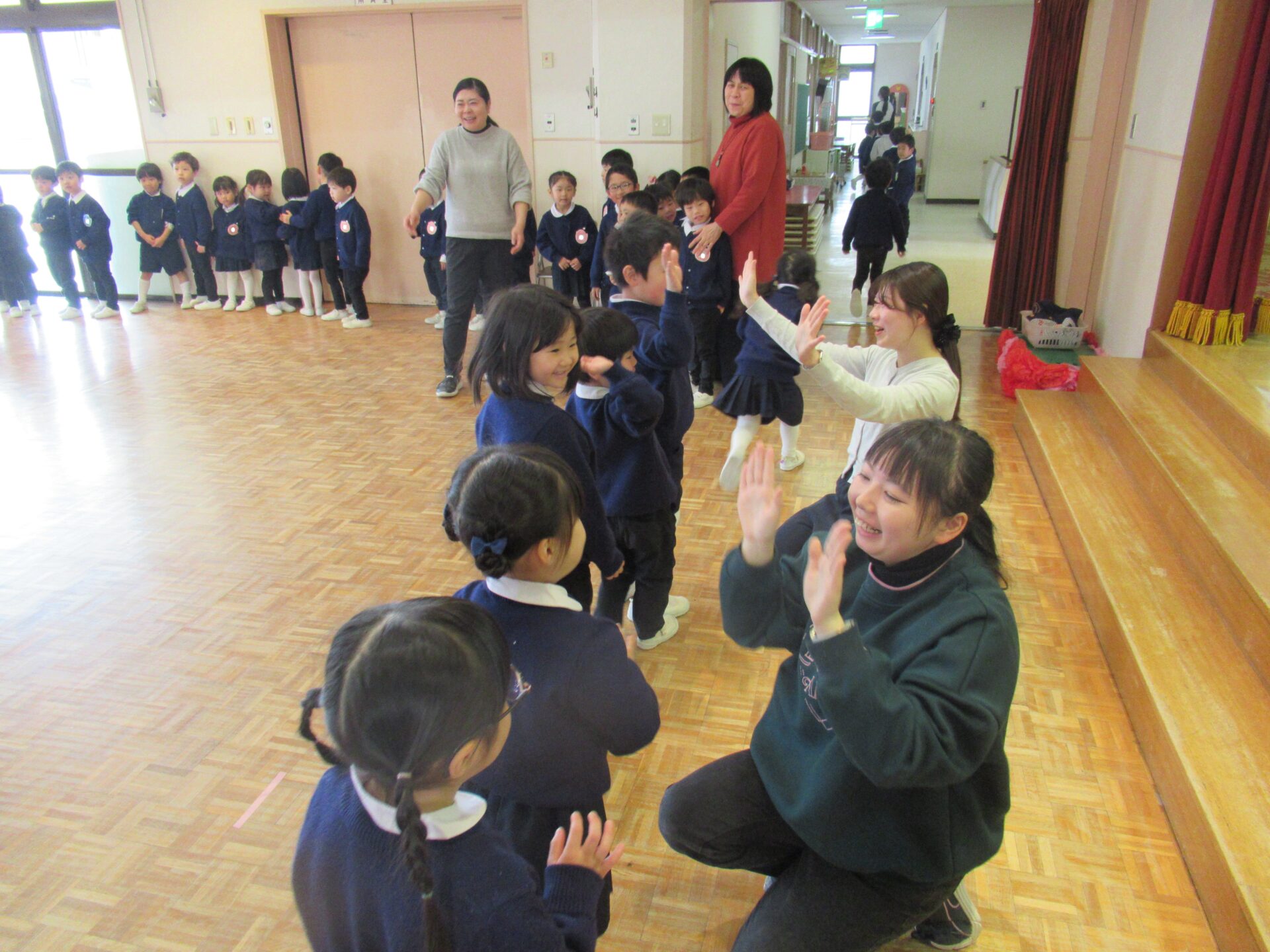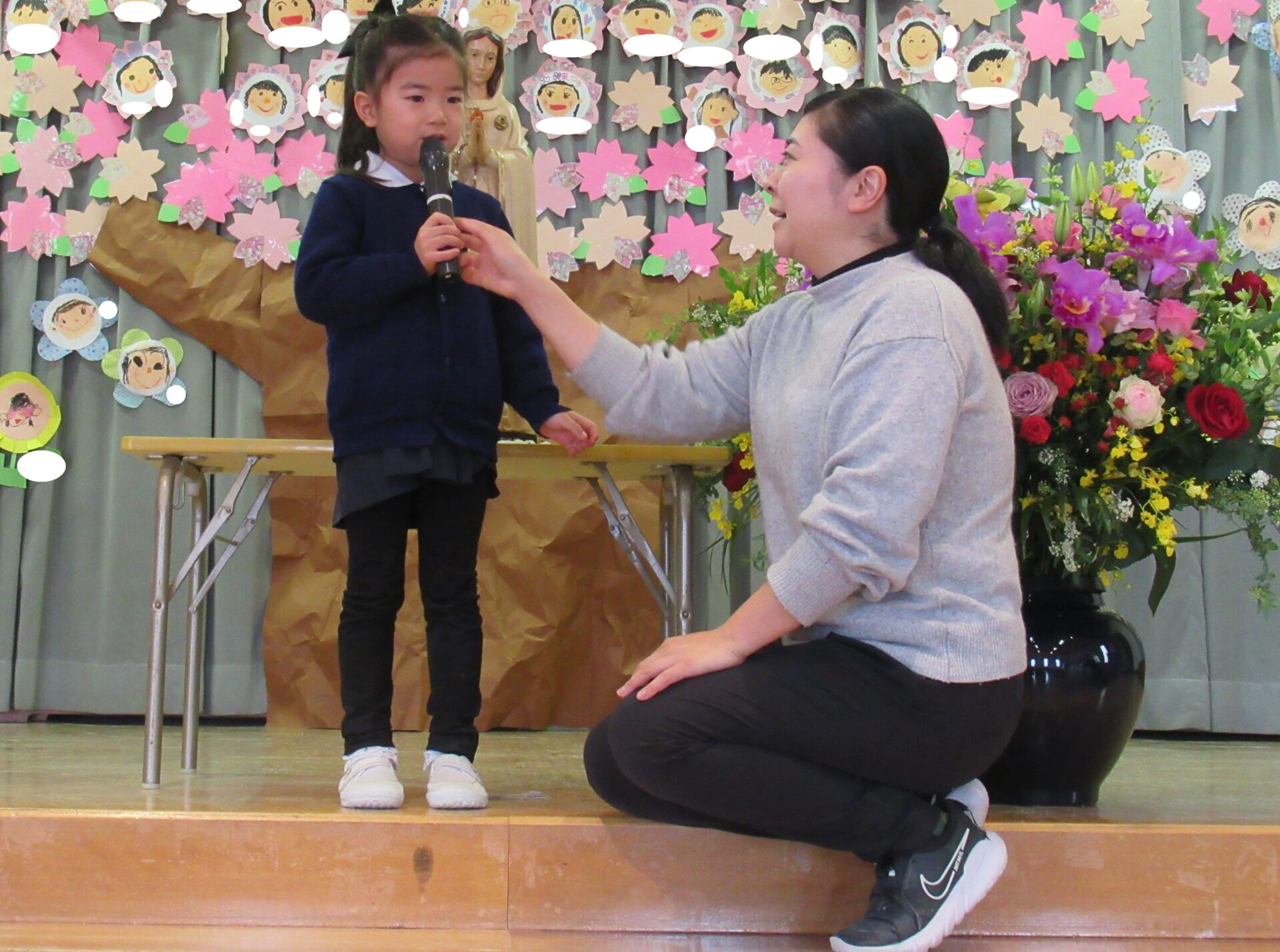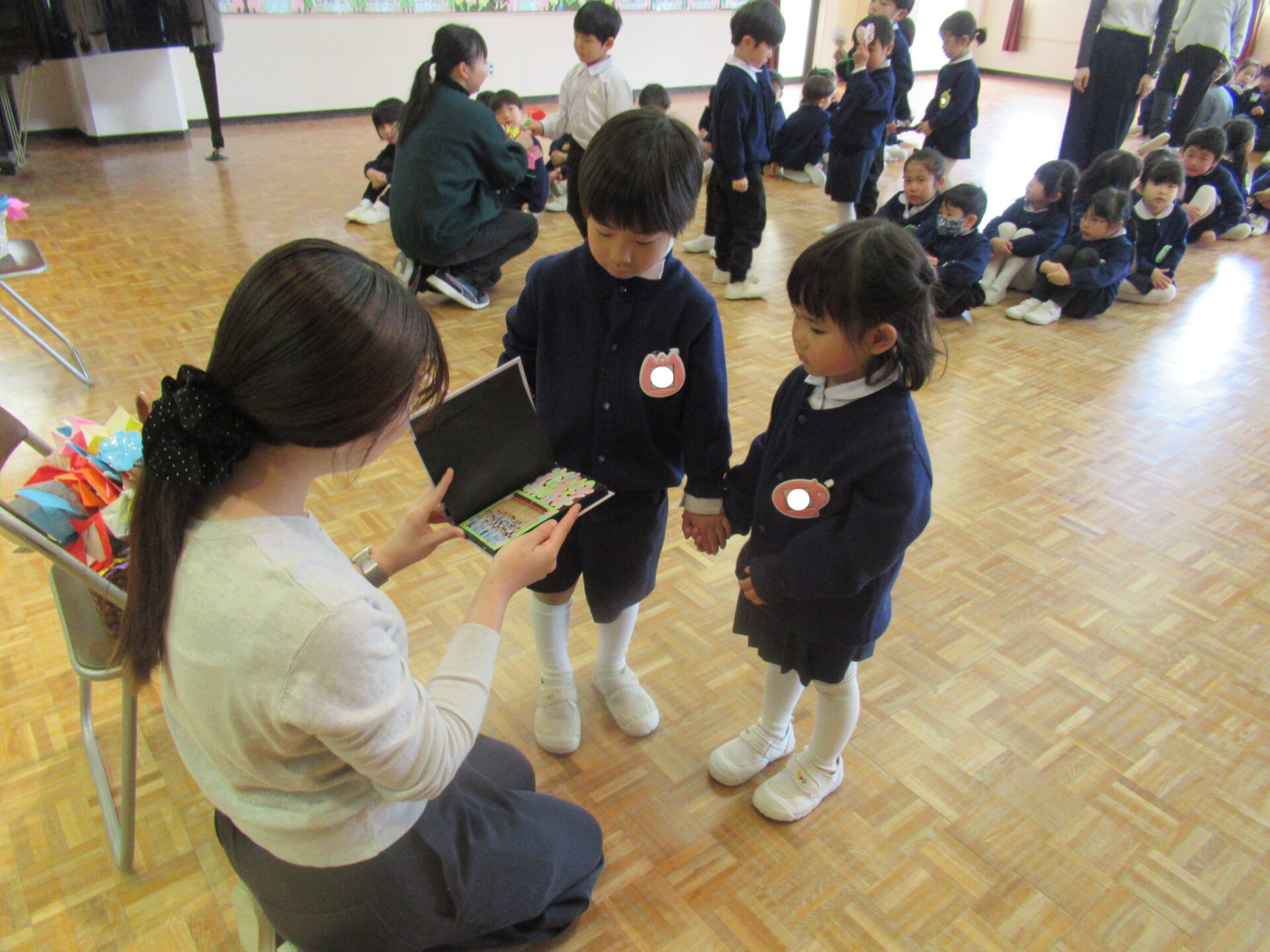 残念ながら、3月で幼稚園とお別れするお友達がいるので、皆に挨拶をしてもらいました。
