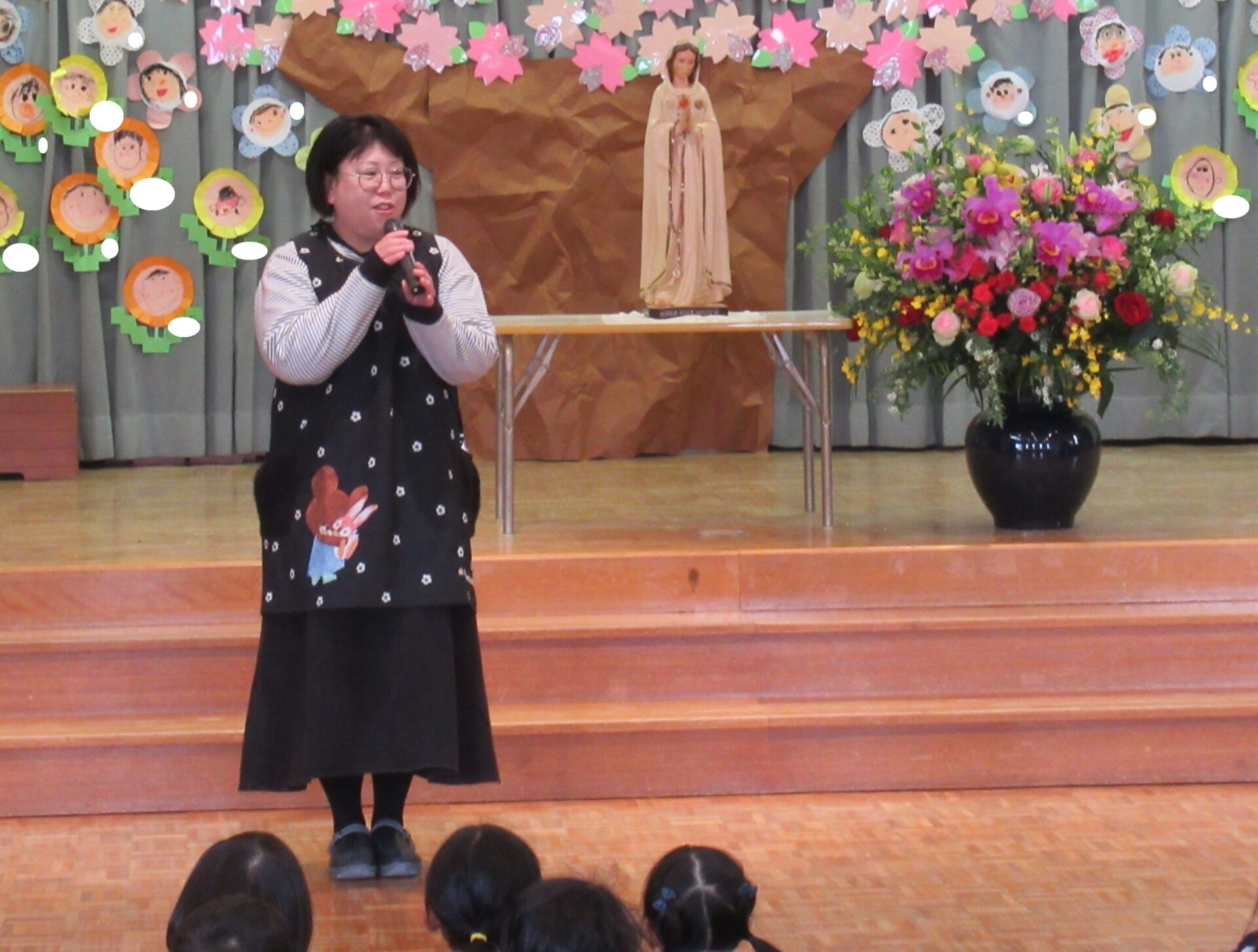 今年最後のお祈り。この一年、お友達と元気いっぱい、楽しく過ごせたことを感謝するとともに、春休み中も元気に過ごせるよう、神様にお祈りをしました。