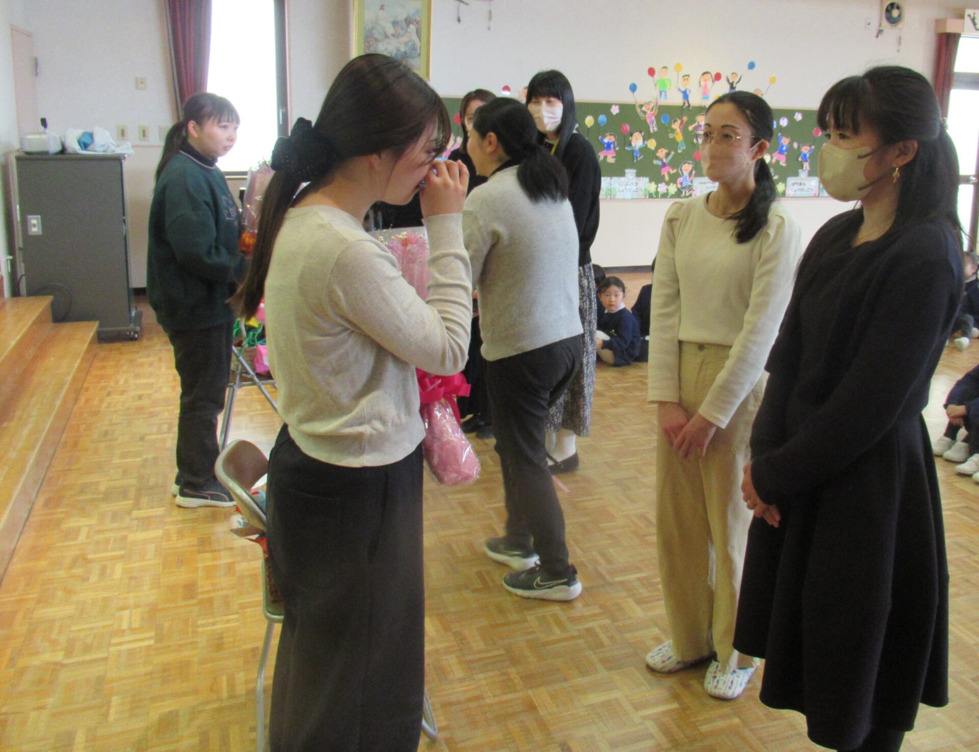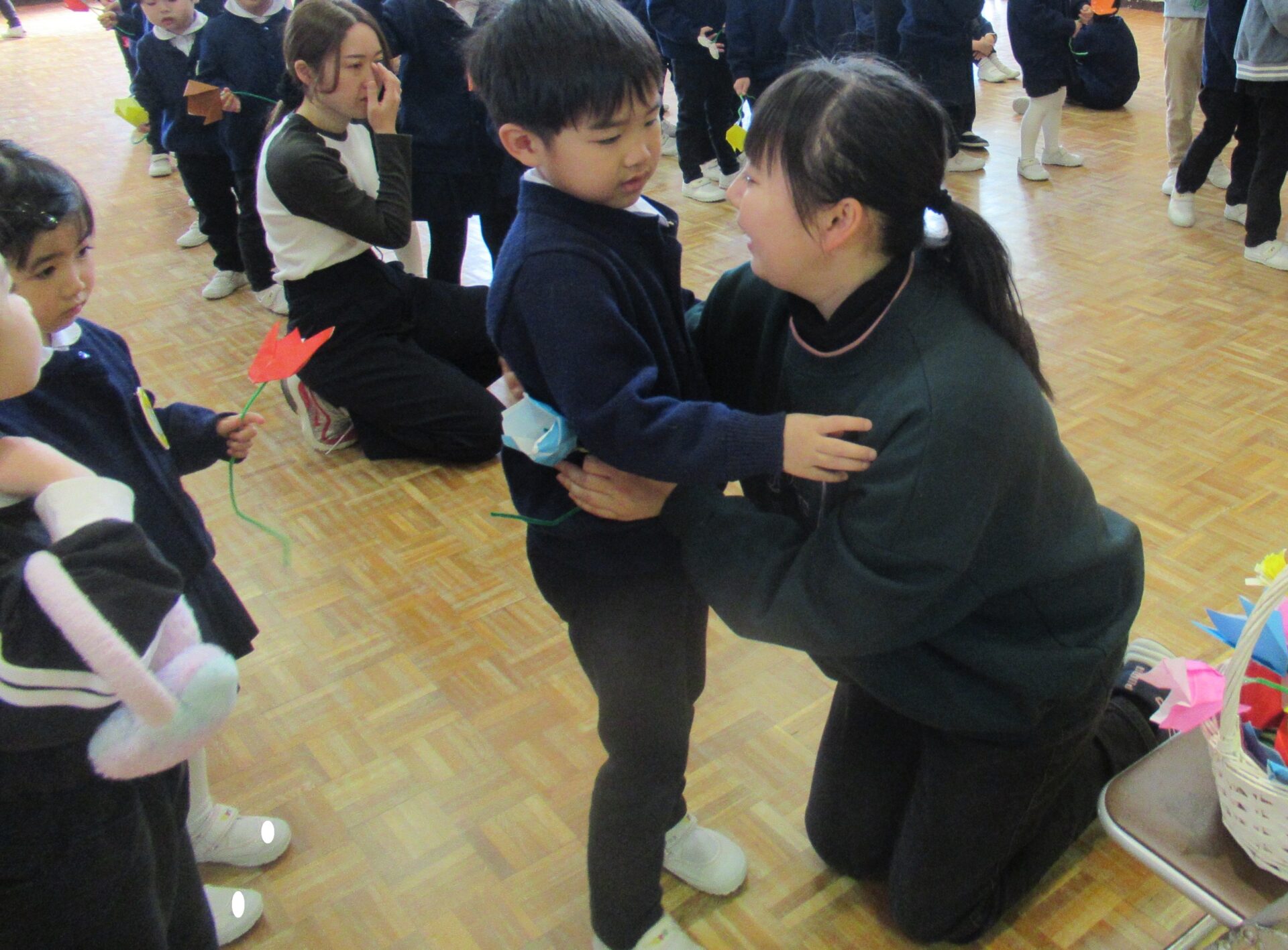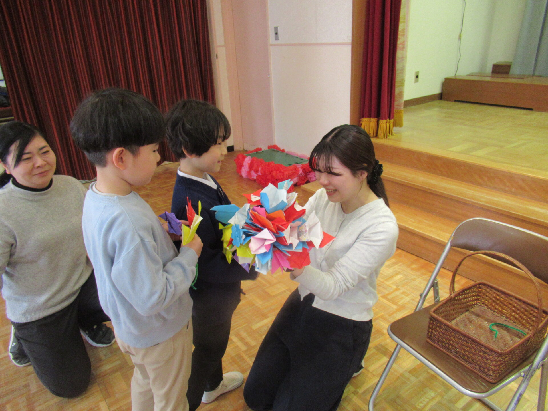 感謝の気持ちを込めて、子どもたちからプレゼントと、お別れのハグをしました!
