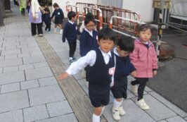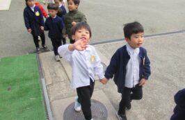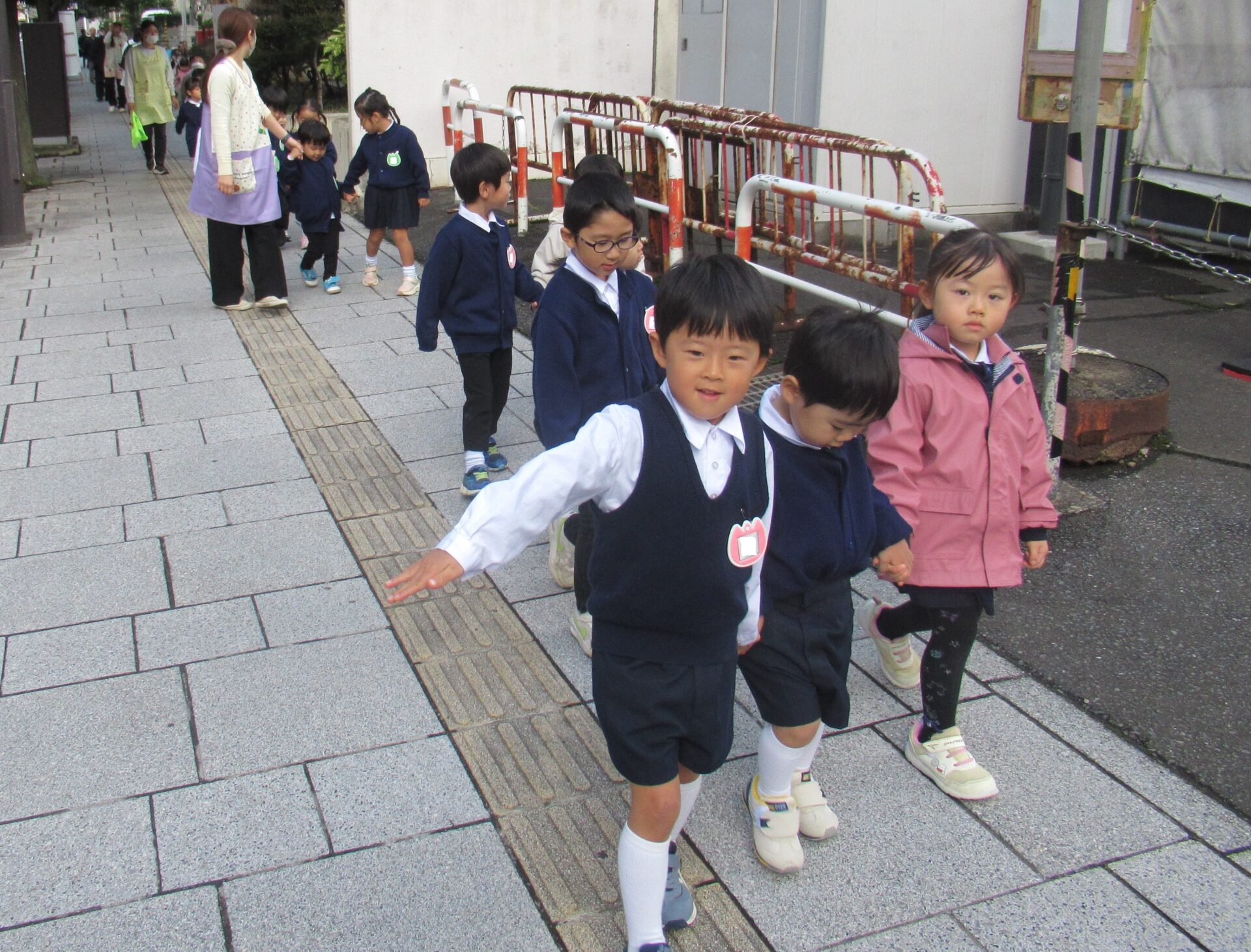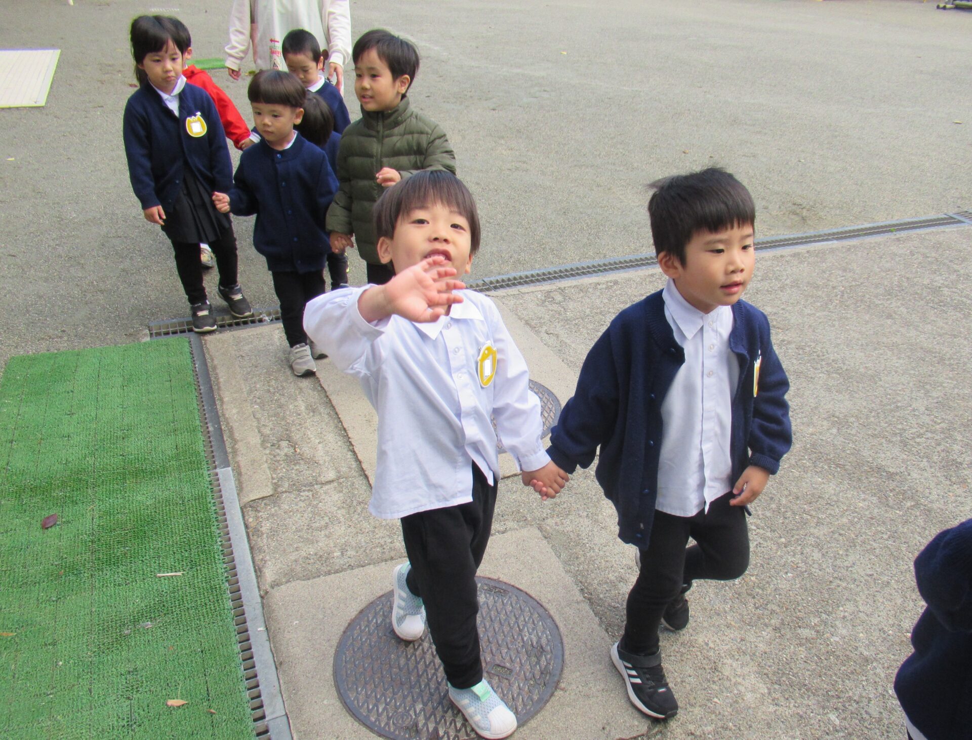 10月30日(水)、日頃お世話になっている地域の方々に、勤労感謝を前に感謝の気持ちを伝えるため、年中児・年少児が感謝めぐりを行いました!