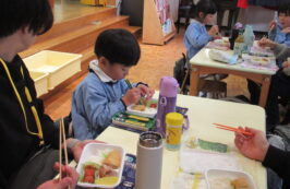 大好きなお家の方と一緒に食べる給食は、いつも以上に美味しく感じていたようです。
