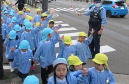 10月21日(火)地震等の災害時に備え、指定避難所の上杉山中学校まで歩いて、避難ルートの確認を行いました。 横断歩道を渡って、目的地に向かいます(^^)/ 上杉山中学校に到着し、避難場所の確認をしました。