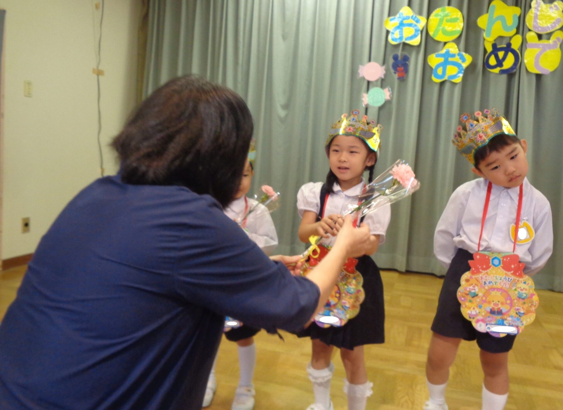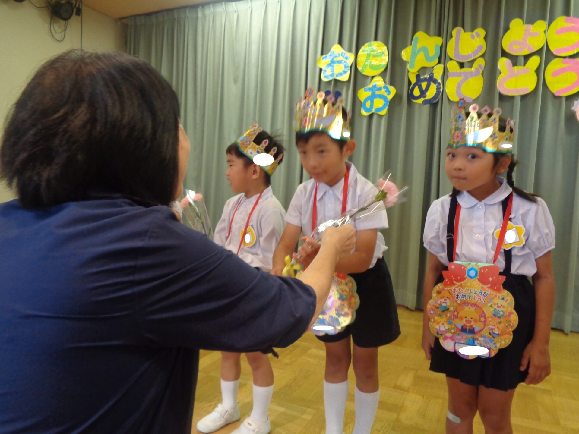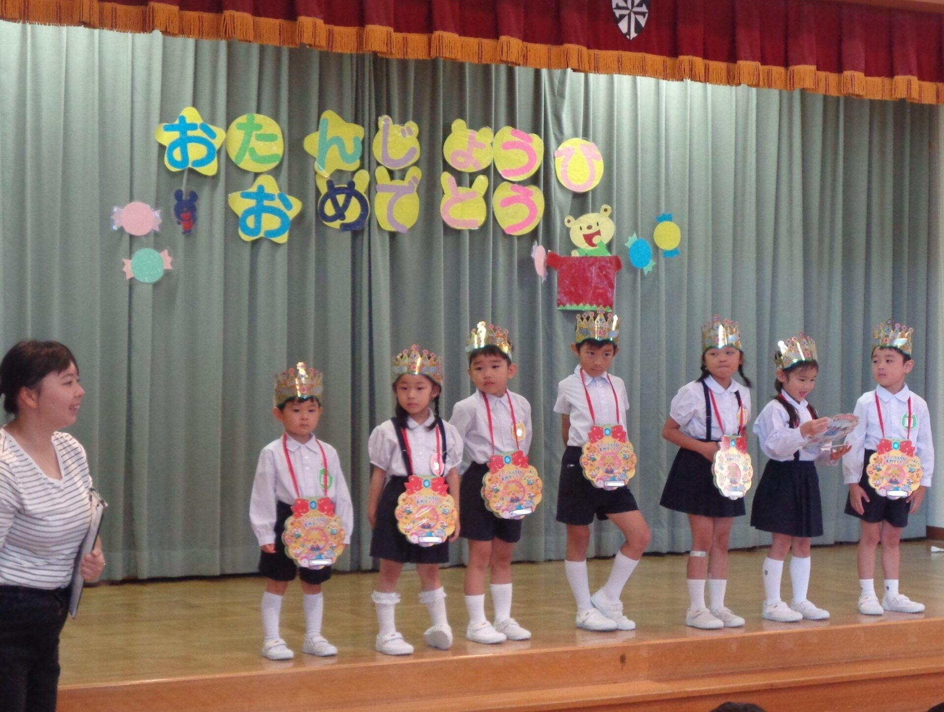 10月8日(水)、10月生まれ8名のお誕生日会が行われました。 今回も年長さんの作ってくれたアーチをくぐって、誕生児が入場です♪ お友達がステージに上がって、自己紹介と「好きなケーキの味」を教えてくれました🍰 担任の先生からカード、冠のプレゼント、園長先生から花束のプレゼントがありました✨ ドミニコ幼稚園のお友達から、歌のプレゼント🎤 10月生まれのお友達、お誕生日おめでとうございます‼