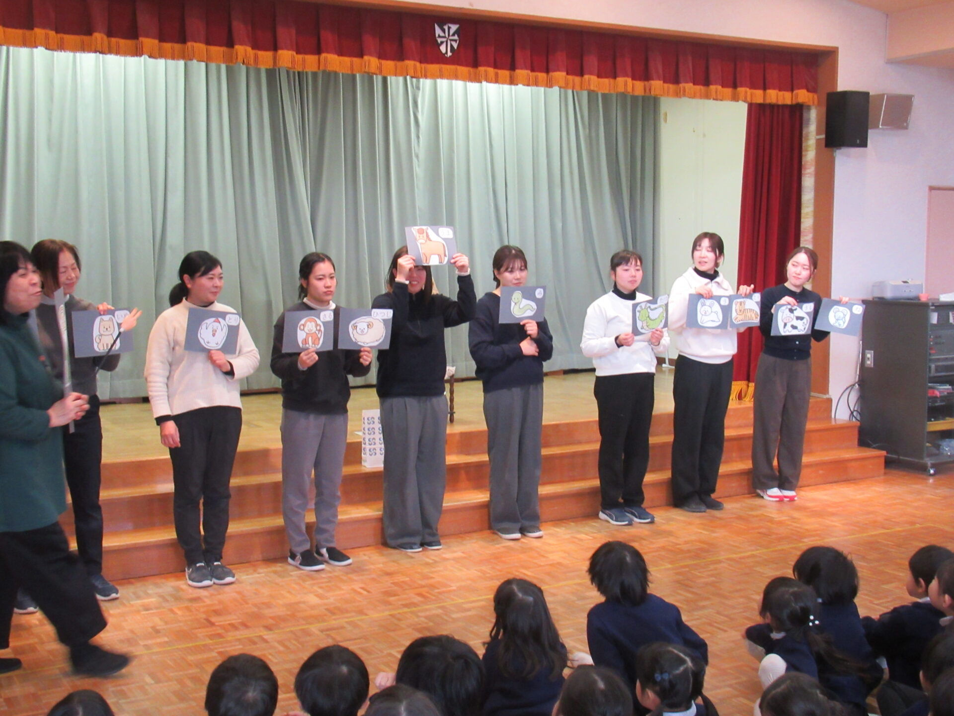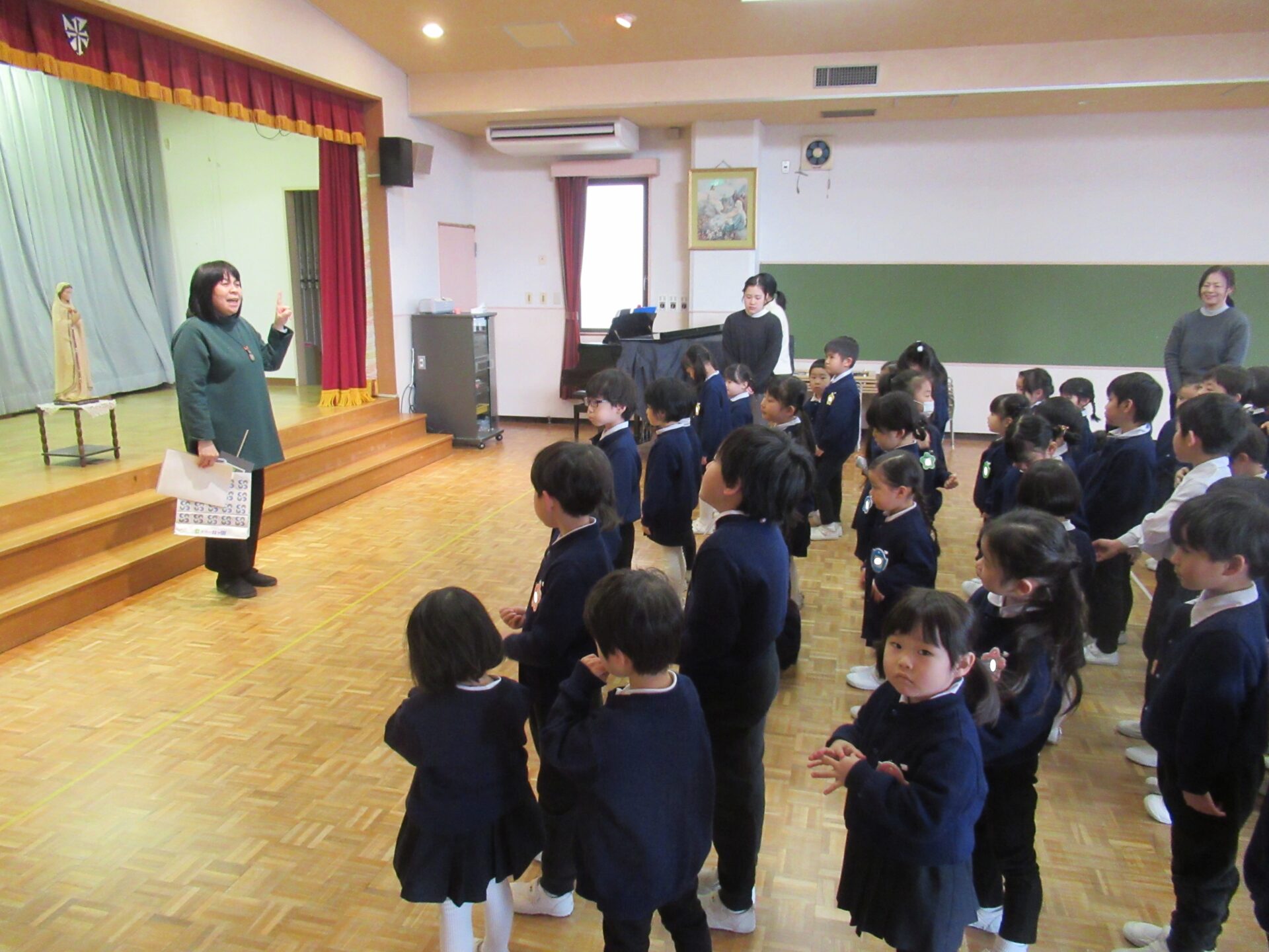 園長先生からは、『12支のはじまり』を楽しく、ペープサート用いて、お話をいただきました!