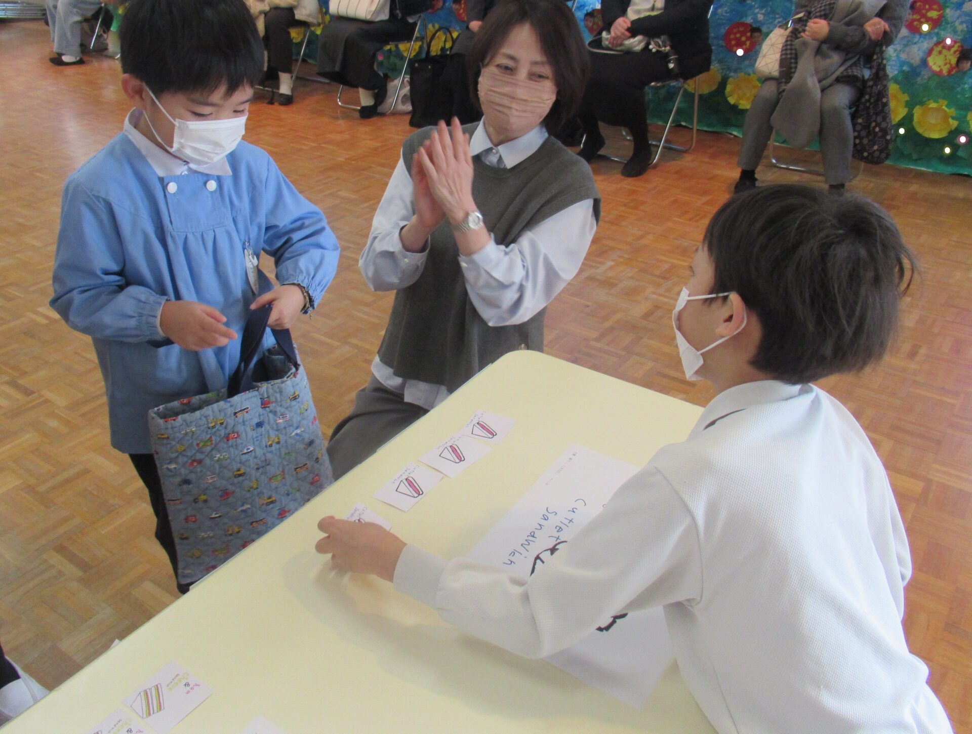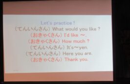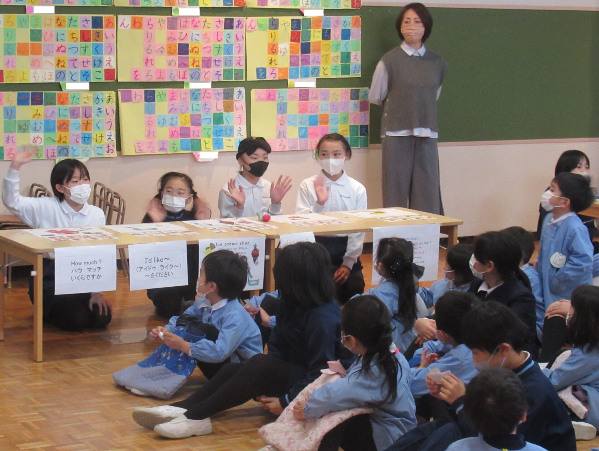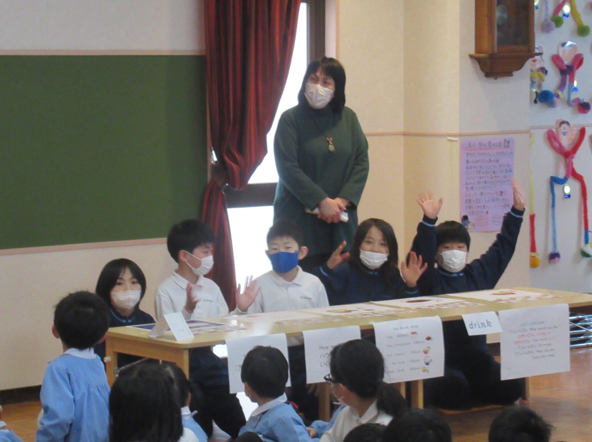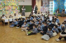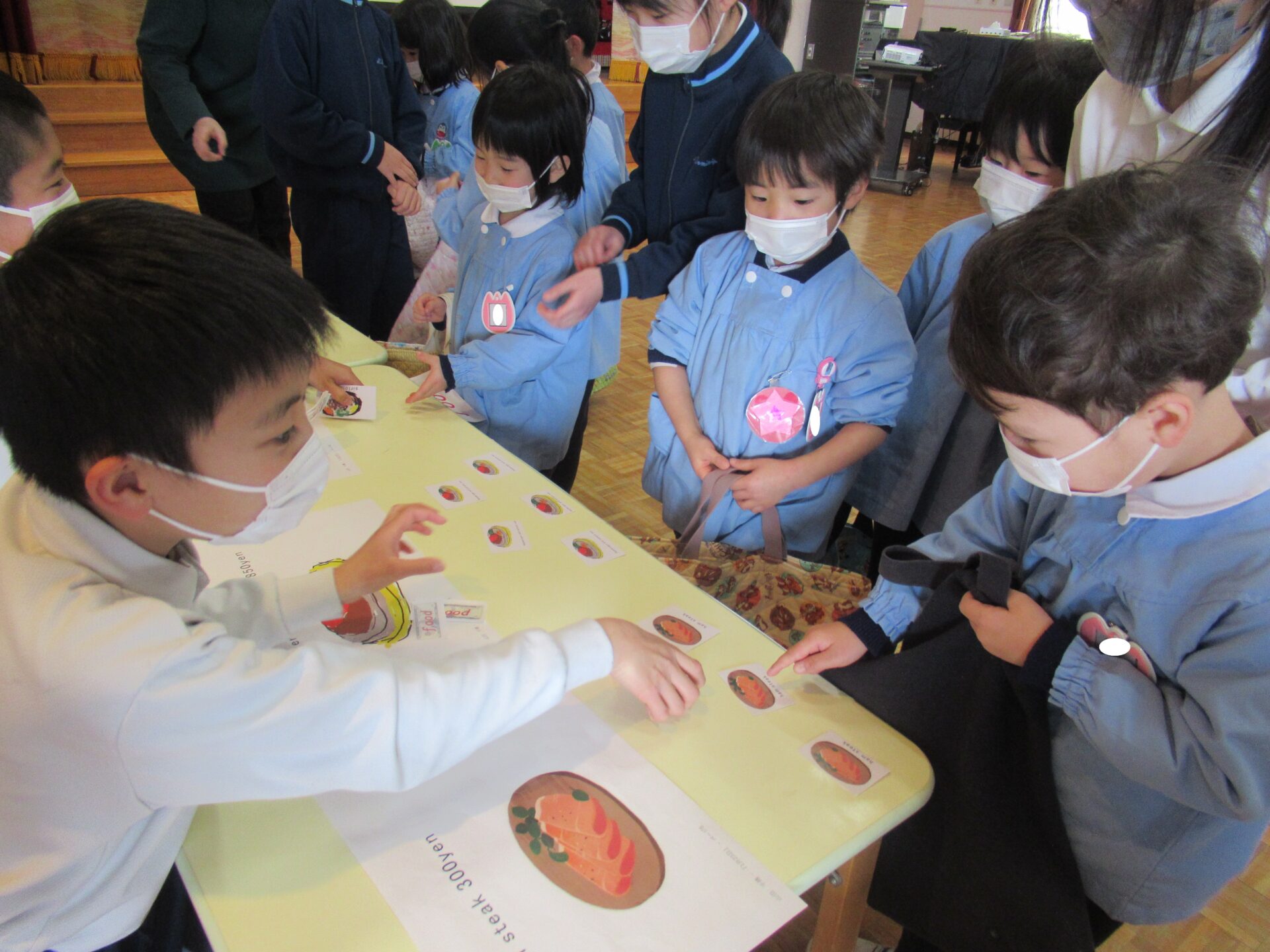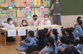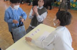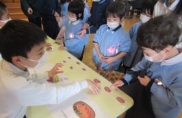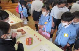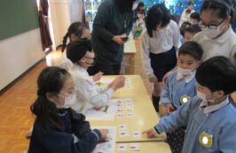 2月16日(火)に、聖ドミニコ学院小学校4年生と年中児の交流会が行われ、英語で『お買い物ごっこ』をしました。